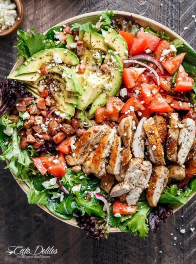 It’s simple. Brown your chicken breast and cut it. Put lettuce on a plate. Cut your avocados, tomatoes and onions and arrange them beautifully atop the lettuce. Sprinkle crumbled cheese on everything. Sprinkle basil over everything to make it a gourmet meal 😊. And my lovely folks, you have a healthy beautiful meal.