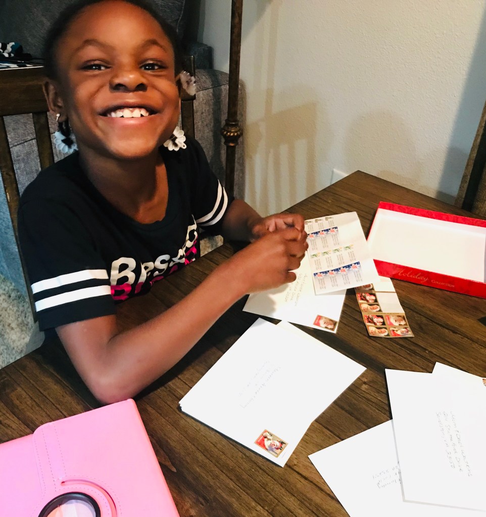 I know there will come a time when my kids have to send a letter or a card via the Postal Service so it’s important to teach them how to do that. This lost skill is not being taught in most schools so parents please teach your kids this skill. You can do it in a fun way as I did by addressing Christmas cards. You can also do it when you mail birthday cards 🎈.